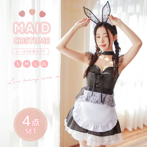 胸元あきがセクシーで可愛い、大人キュートなうさ耳メイドコスチューム。レースアップなのでバストアップも...